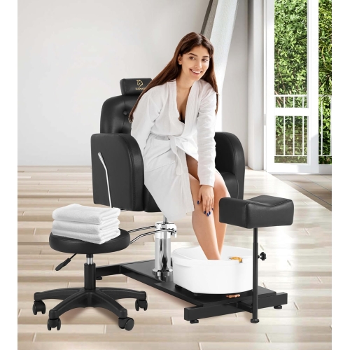 • Wide Application - Portable pedicure station with foot basin, massage function to relax foot muscles. Backrest reclines up to 130 degrees suitable for foot baths, beauty salons, nail salons, or at home. You can also perform a soothing and relaxing foot bath massage yourself, with simple operation and easy installation.