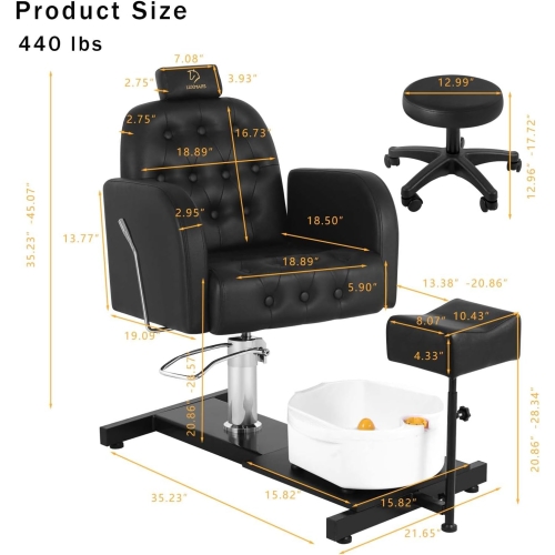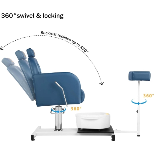 • Hydraulic Height Adjustable - The height of the pedicure chair for nail tech can be adjusted, 360°rotation lift chair seat and the seat height can be adjusted up and down by 5.7 inches. By gently pressing the foot lever, it can be adjusted to the height you need. The seat weighs 440 pounds, and when you reach this chair, you can experience perfect service.