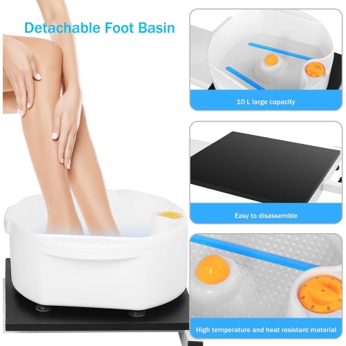 • Removable Massage Foot Basin - Pedicure chairs no plumbing, the massage basin has a capacity of up to 10 L, detachable designed. The base groove can fix it in place, making it easy to use. The massage foot basin has three gears of vibration, and small high-frequency vibrations can effectively clean and relax the feet. It is heat-resistant, odorless, and has a longer service life.