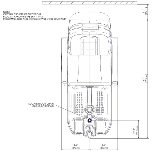 - Electrical switches: On/Off switch for pump. Single hand-held, low voltage remote controls for massage motors and seat forward/back position. Hot and Cold water supply lines required.