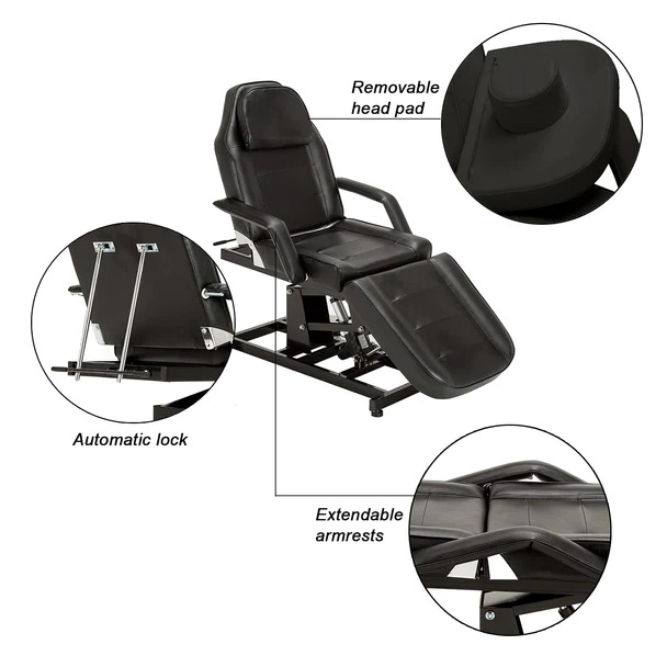 - Extendable armrests and removable head pad with facial hole.