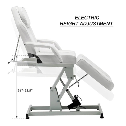 - Electric beauty bed in stylish design.The remote control can adjust the height and the adjustment of recline is manual.