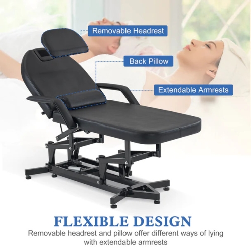 - Humanized Design: Adjustable massage chairs can provide a full body support. The headrest can be freely removed by Velcro, which makes it easy for clients to lie on their stomachs. Towel rack on the back is designed to keep your towels within reach.