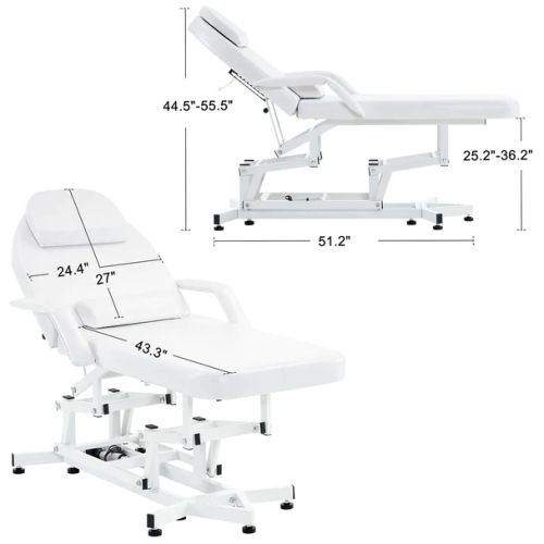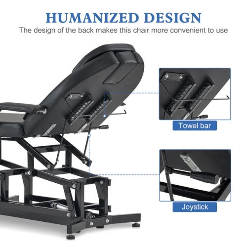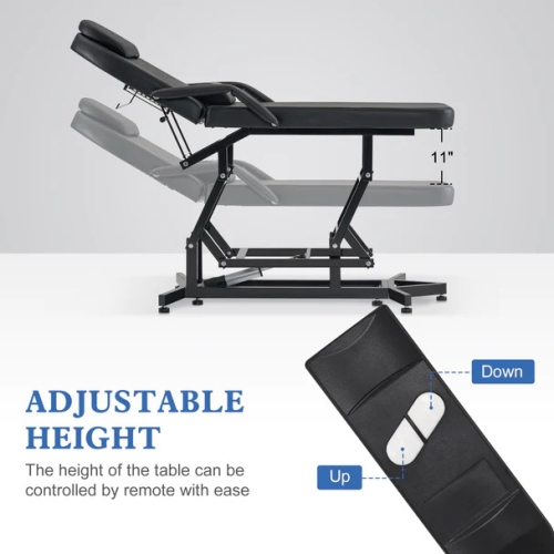 - Convenient Adjustment: The angle of backrest can be manually adjusted from 140~180 degrees by the T-bar. The height of seat (adjustment range: 25.2’’~36.2”) of the massage bed can be electrically adjusted by remote control.