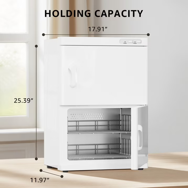 - 46L Extra-Large Capacity - TABU towel warmer features a 46L extra-large capacity and a double-layer stainless steel towel rack. With this towel warmer, you can simultaneously heat and store 60-80 towels (depending on the actual size of the towels).