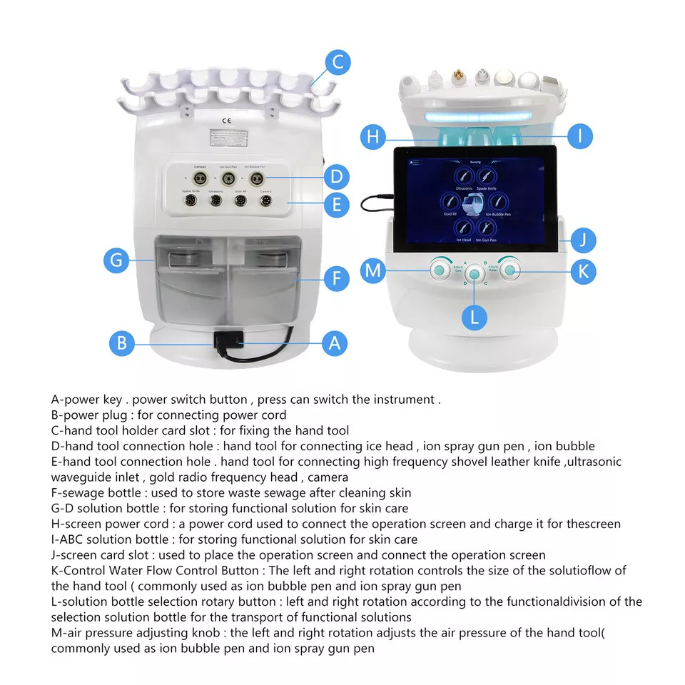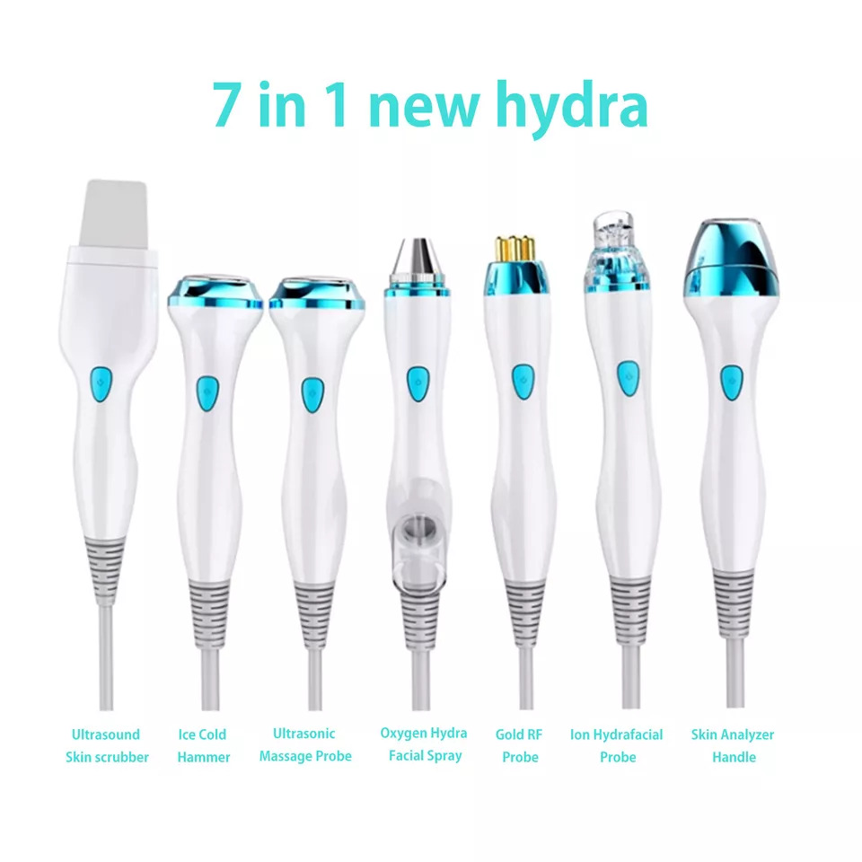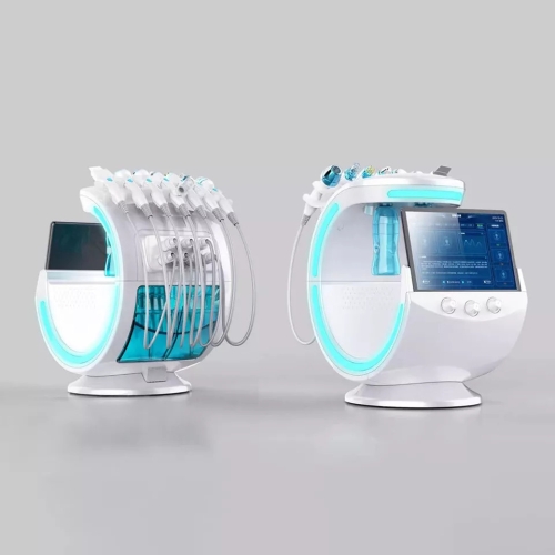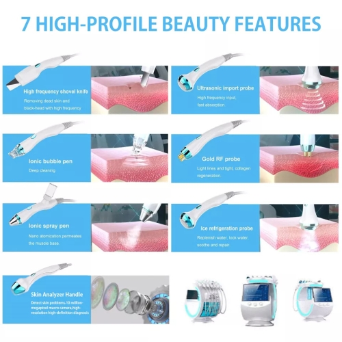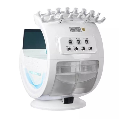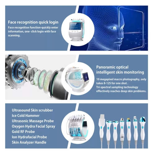 The intelligent ice blue skin management system is a 7in1 multifunction unit to offer professional skin hair sculpt analyzer service by collecting facial skin detail images through 10 million pixel high-definition micro-range camera combined with three-spectral imaging technology, through intelligent diagnosis and analysis of artificial intelligence core engine ,8 dimension target to detect skin problems, and according to the diagnosis results of private customized beauty care program and intelligent recommendation of professional skin care products. It also Combined with the techniques of" ultra skin scrubber "," hydra spa facial bubble peel "," nano atomization spray"," ultra wave massage "," gold radio frequency face lift"," ice cryo repair " to develop a multi-functional integrated equipment for skin management