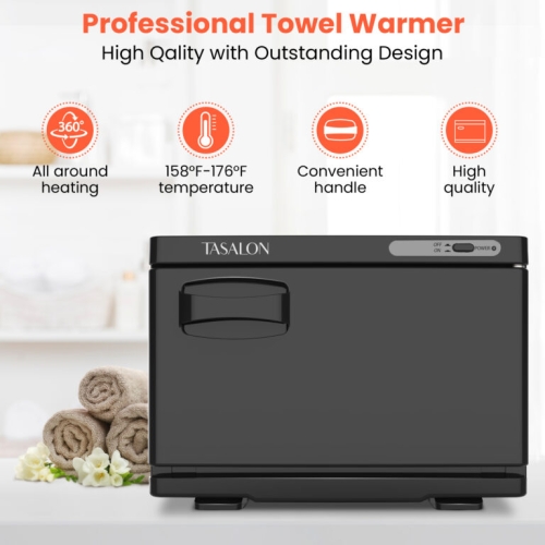 - Professional Classic Hot Towel Warmer: Heats up to 158°F-176°F in about 10-15 minutes, no thermostat needed. Automatic thermo-control system, which keeps towels in perfect temperature for salon and spa service.