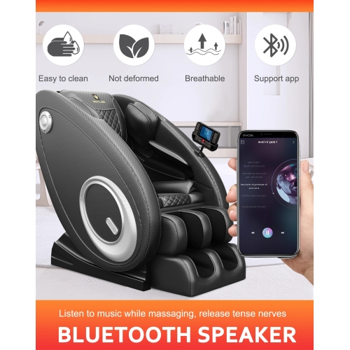 ●Press the “Zero Gravity” button, after fully reclining, the feet are higher than the heart, reducing the body's influence on gravity, reducing the burden on the heart and enhancing the massage effect. Wireless Bluetooth Speaker