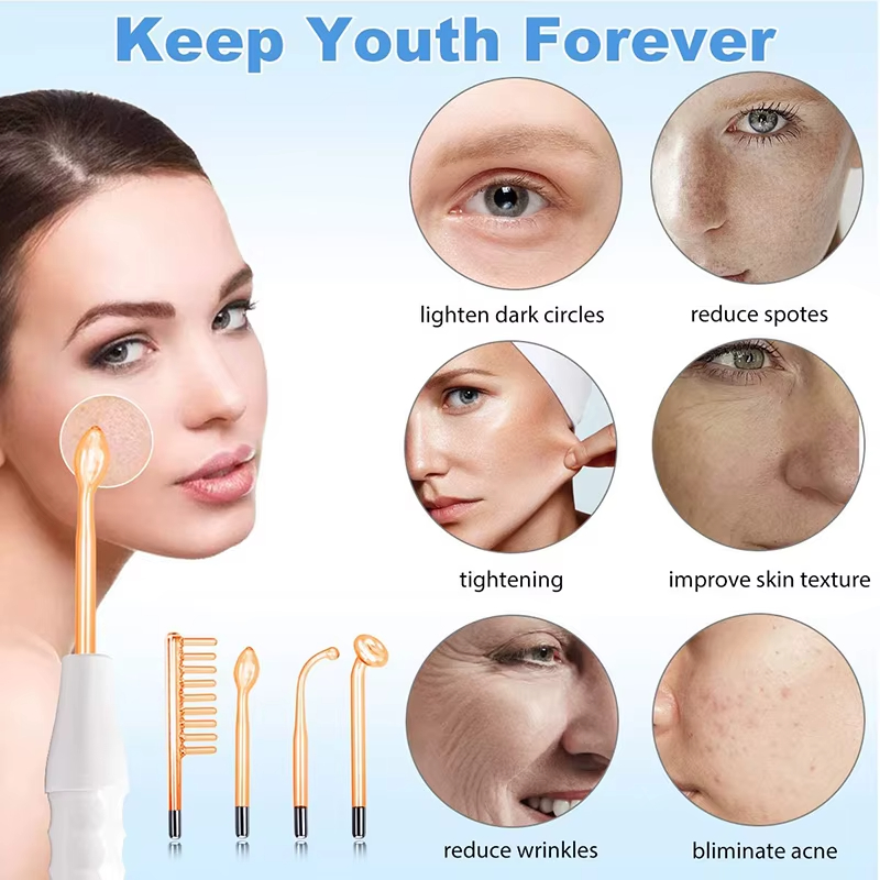 - Sparkle Method----fit for wounds, sore and the eyes with a piece of the wet cloth patch and touch the face with the glass tube on the part of inflammation. For one time, the treatment should be less than 10 sec. It's normal if there are sparkles coming out while the glass tube touches the face.