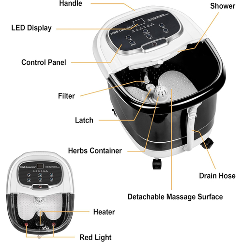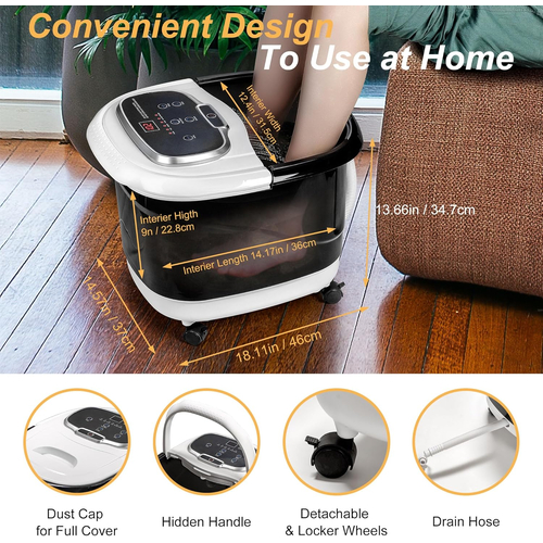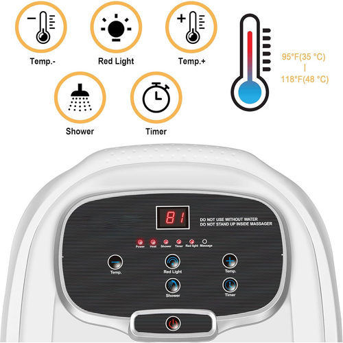 Multi-functional Foot Bath: Get this foot spa to bring you a comfortable foot bath. It features heating function, red light, shower and timer. With electric leakage protection - Safest foot spa. ETL listed. Roomy enough for both women and men.