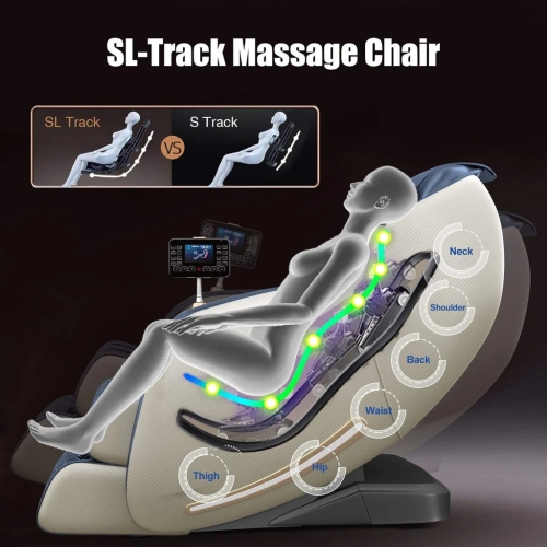 SL-TrackDesigned with the SL track, you can enjoy the 3D robot hands massage from neck to hip. | Auto BodyScanAutomatically scan your body after turn on, according to the height, body shape, adjust the massage points to suit the different requirements. | Bluetooth SpeakerTurn on the power and connect the "Bluetooth" of the massage chair to enjoy the music while the massage. |