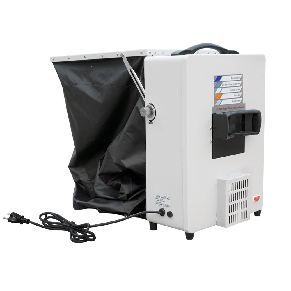 The Skin Scanner uses black light and magnification to show variety of skin imperfections that are undetectable with the naked eye. Your client can simultaneously view what the technician sees. It can help sell your esthetic products and services by revealing skin conditions to the client. Use before and after microdermabrasion to evaluate results. Fits on any flat surface desk or carts. Has a metal cover.