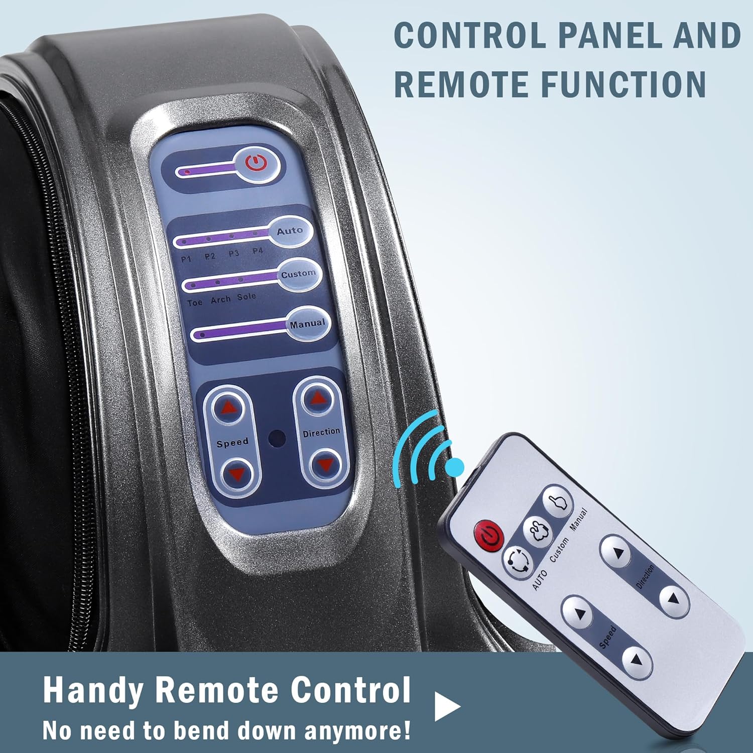 - FOOT MASSAGER WITH REMOTE: The foot massager with remote controller can be adjusted 4 auto modes & 3 custom modes to target your tiptoe, arch of the foot, sole of the foot with adjustable kneading speed. You can also choose manual mode to target your interested areas. Easy to use and convenient for you massage your feet anytime while computer working, watching TV, and reading.