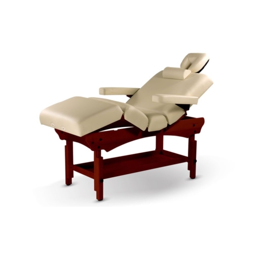 The Versatile BodyChoice Stationary Massage Table is the perfect combination of stability and versatility; beauty and strength. Like its name suggests, this table is super versatile—with the touch of a switch, the backrest smoothly and quietly adjust up and down thanks to pneumatic gas-spring technology. You can position your clients in so many comfortable ways! The Versatile BodyChoice Stationary Massage Table also features ultra-thick 3.5" padding, a removable neck bolster, and fully adjustable and removable side armrests for the comfort of your clients.