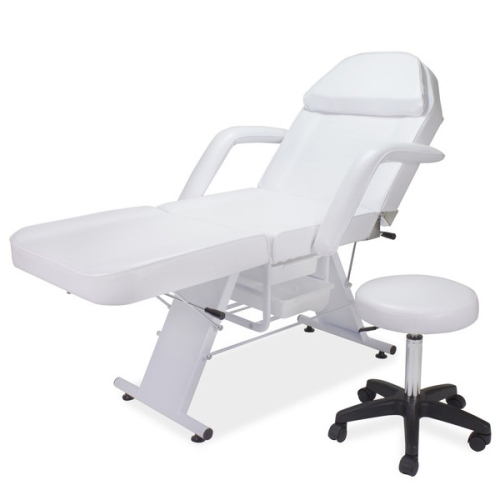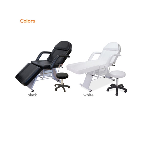 The Parker Facial Chair is a professional and economic facial bed. It has a elegant design that will accentuate any spa décor. A great feature about this facial chair is that it can be used for massaging, waxing, tattooing, and body piercing. Additionally, it offers a removable face cut out pillow, adjustable backrest and leg rest, removable armrests, sanitary paper holder, 1 hydraulic stool, and 2 storage drawers. Comes available in black or white.