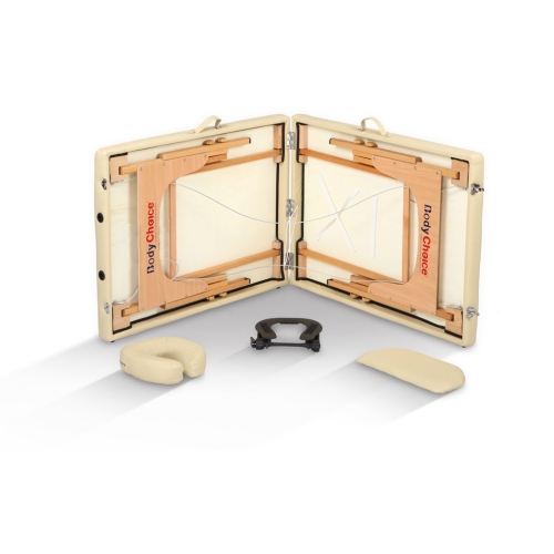 The Eco-Basic BodyChoice massage table is an unbelievable bargain you can find nowhere else! It is a solid, dependable massage table that is super lightweight and easily portable. It also has built-in reiki panels so you can perform seated work at either end of the massage table comfortably. The Eco-Basic BodyChoice comes with all the standard accessories you need to get started with massage (see Free Accessories).
