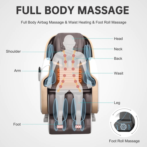 Unique air pressure system. The shoulders, waist, arms, legs, and feet are all equipped with airbags. By inflating and deflating, provide full body massage experience, help to relax the body, and relieve fatigue.