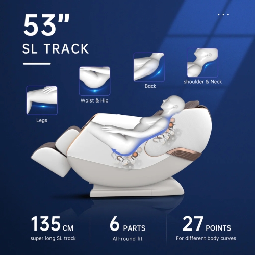 SL-track pushes the chair's rollers from head to thighs, ensuring that you receive a full-body massage; Robot Hands inside of the backrest work with SL-TRACK provide a complete massage to comfort and relax you from head to thighs. Our robot-hand rollers have up to 12 different massage techniques.