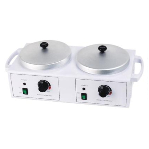 A thermostat controlled dual 14 oz. wax warmer designed for profes-sional use. Pots can be controlled independently to allow for dif fe-rent waxes to melt at dif ferent heats . Removable covers prevent contamination.