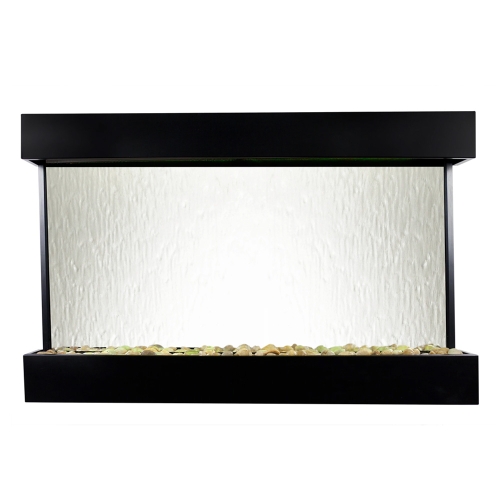 The Echo Falls Large Vertical Silver Mirror with Black trim is the newest in our series from our chromotherapy line. Features black onyx powered coated side panels, header, and reservoir. Color is widely known to affect our moods, emotions and possibly our health. Our reflective mirror wall fountains have the same color changing LED lighting system has our Garden Fall floor fountains. Sit back and relax as a wave after wave of color transformed your room into a light show. Pure relaxation. With a handheld remote you can select from several solid color options, or choose one of several pre-programmed color changing light displays.