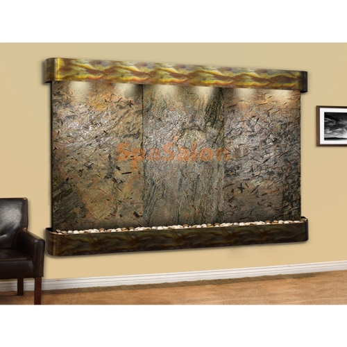 The Solitude River Waterfall features 3 stones side-by-side for a large, wall-mounted water feature for your home or office.