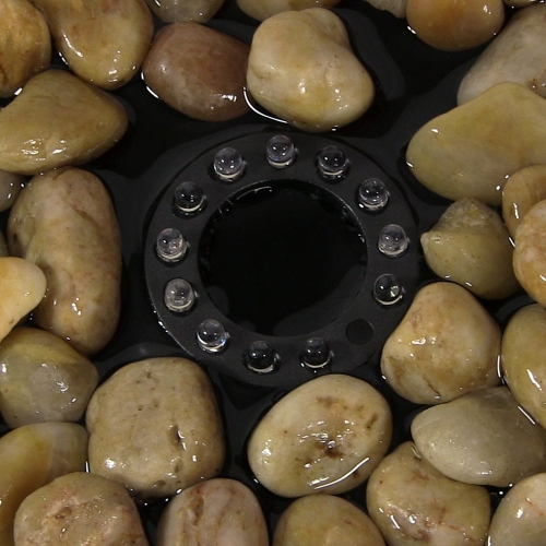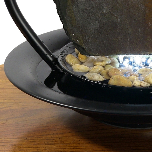Zen Moonshadow ships with an adjustable pump, on/off in-line rocker switch and polished river rocks. Please note that these units are handmade and measurements may vary slightly. Texture and color of the slate will vary with each fountain.