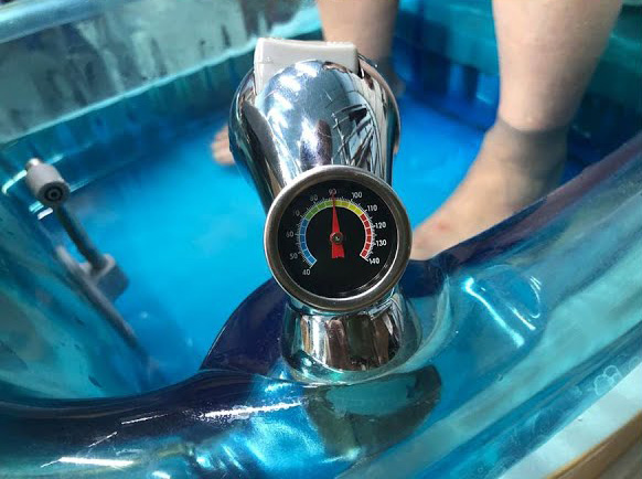 • Allows people with sensitive-to-hot-water skin to see what the water temperature is set at.
