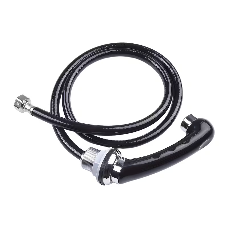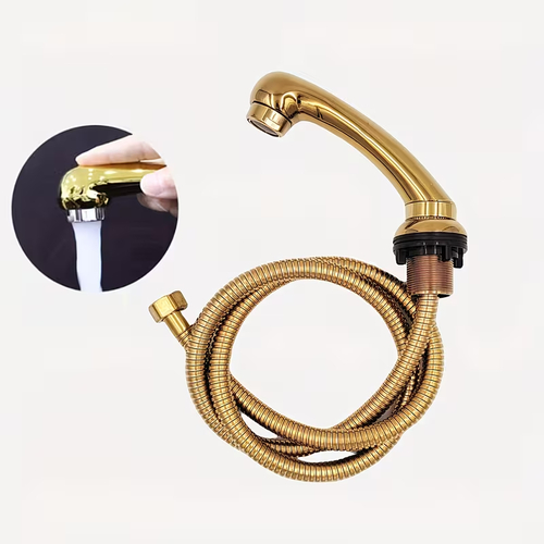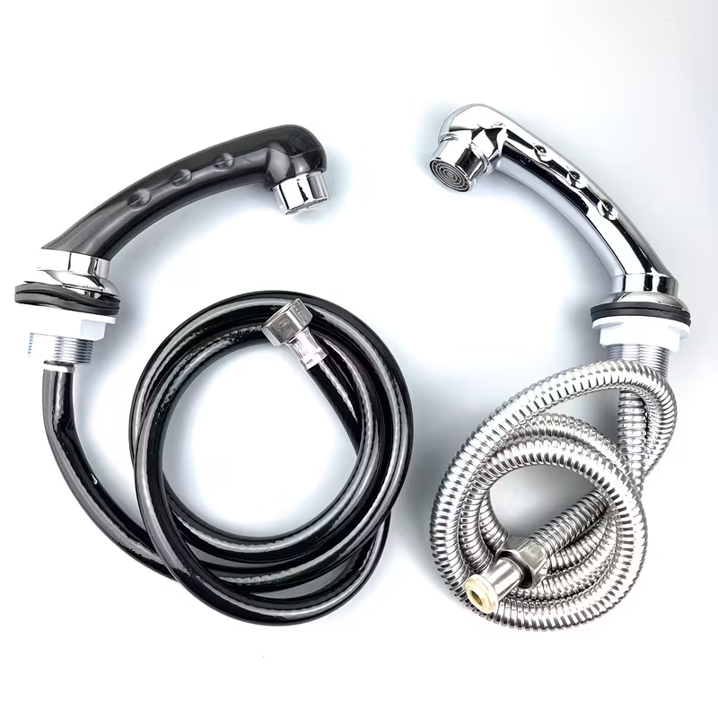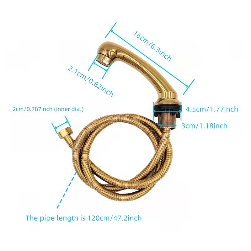 Sprayer Body: Made of high-quality ABS material, durable with multi-layer chrome plating for corrosion and rust resistance; Hose: Inner tube made of premium, flexible, heat-resistant EPDM material; Black outer hose crafted from 0.2cm/0.078in thickened PVC; Silvery outer hose constructed from 304 stainless steel; Gold outer hose also made from 304 stainless steel