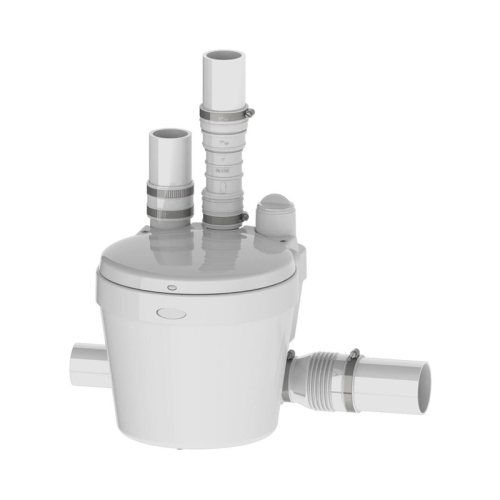 The Saniswift Drain Pump is a compact unit with attractive rounded contours that fits neatly into tight spaces, suitable for use almost anywhere additional fixtures are needed. It reliably pumps waste water away from a variety of sources, including sinks and pedicure spas. The Saniswift's modern style prevails over other bulky relics. This system offers powerful and economical pumping action in a compact, contemporary design. With unprecedented performance and features, this pump is unmatched in its class. The unit pumps away waste water upward to 14 feet and/or 140 feet horizontally (with gravity fall). Once the water is discharged and the water level in the container goes down, the pressure switch deactivates the unit until water enters the unit again. A normal operating cycle for the Saniswift can be as short as 2 - 10 seconds depending upon the discharge pipe run configuration, allowing it to perform at optimal performance level with minimal power consumption.