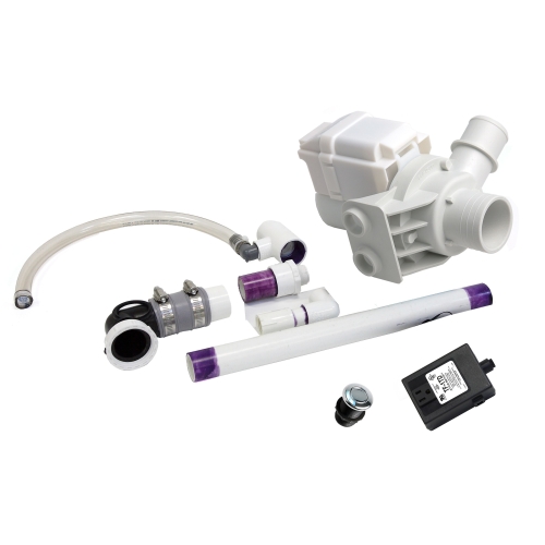- TSB40-3A Discharge Pump Complete Kit / Compatible with Hanning pump - Drain Up to 3 ft. from floor Discharge Pump - Compact Size. Volts: 110 V Hertz: 60 Hz; Pipe Size- 3/4" FNPT Discharge - 3/4" MNPT Comes with Discharge pump drain pipe connections, External button air on/off switch- Chrome, 2 min timer.